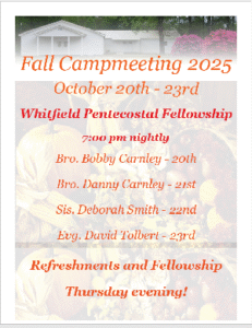 Campmeeting Oct 20th - 23rd!
